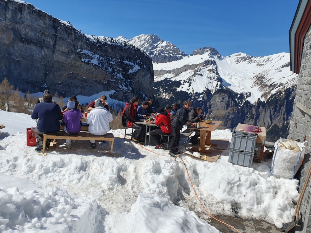 Nach Schnee und Wetterverzögerung konnte der Start nun erfolgen: Am Ostermontag hatten Matthias und die beiden Werner den Weg zur Hütte freigeschaufelt, damit der Helikopter am Dienstag sicher landen und das Material absetzen konnte. Seither herrscht reger Betrieb – Elektriker, Sanitär, Bodenleger, Maler und Schreiner waren vor Ort und haben die Hütte in kurzer Zeit ein grosses Stück weitergebracht.